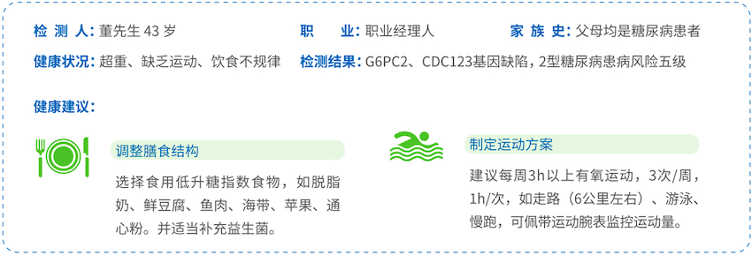并且通过对瑞格列奈、罗格列酮、二甲双胍、格列齐特、吡格列酮五种常见糖尿病治疗药物相关基因进行检测,提高药物的治疗效果,避免药物不良反应,为糖尿病疾病个性化用药提供指导。