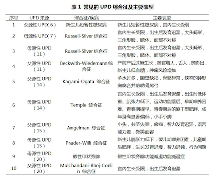 大多数染色体UPD没有临床表型,当UPD发生在印记基因区域则会导致印记基因异常,出现异常的表型。目前针对上述UPD综合征(表1)尚无有效的治疗手段,因此,早发现、早诊断、早干预对于此类疾病的防控尤为重要。
