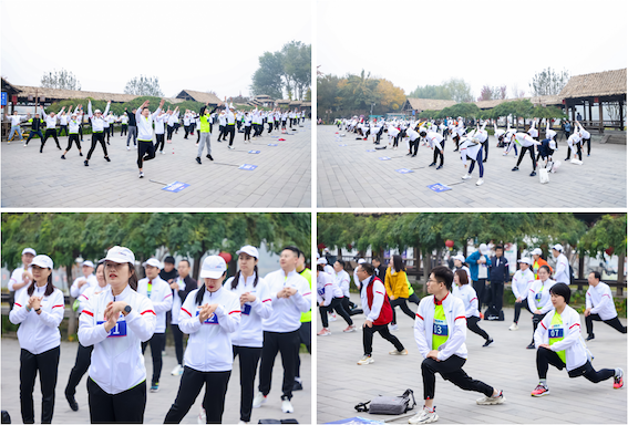 越野拉力赛前,所有参赛选手于通州大运河东岸漕运码头休息长廊广场集合进行赛前热身,通过热身提升关节灵活性,降低可能带来的运动损伤风险。